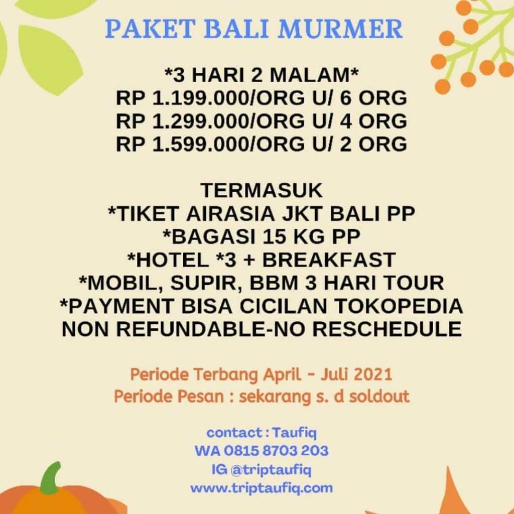 April 17, 2021 Paket Bali Murmer 3H2M Share this: Click to share on X (Opens in new window) X Click to share on Facebook (Opens in new window) Facebook More Click to share on Tumblr (Opens in new window) Tumblr Click to share on WhatsApp (Opens in new window) WhatsApp Like Loading...