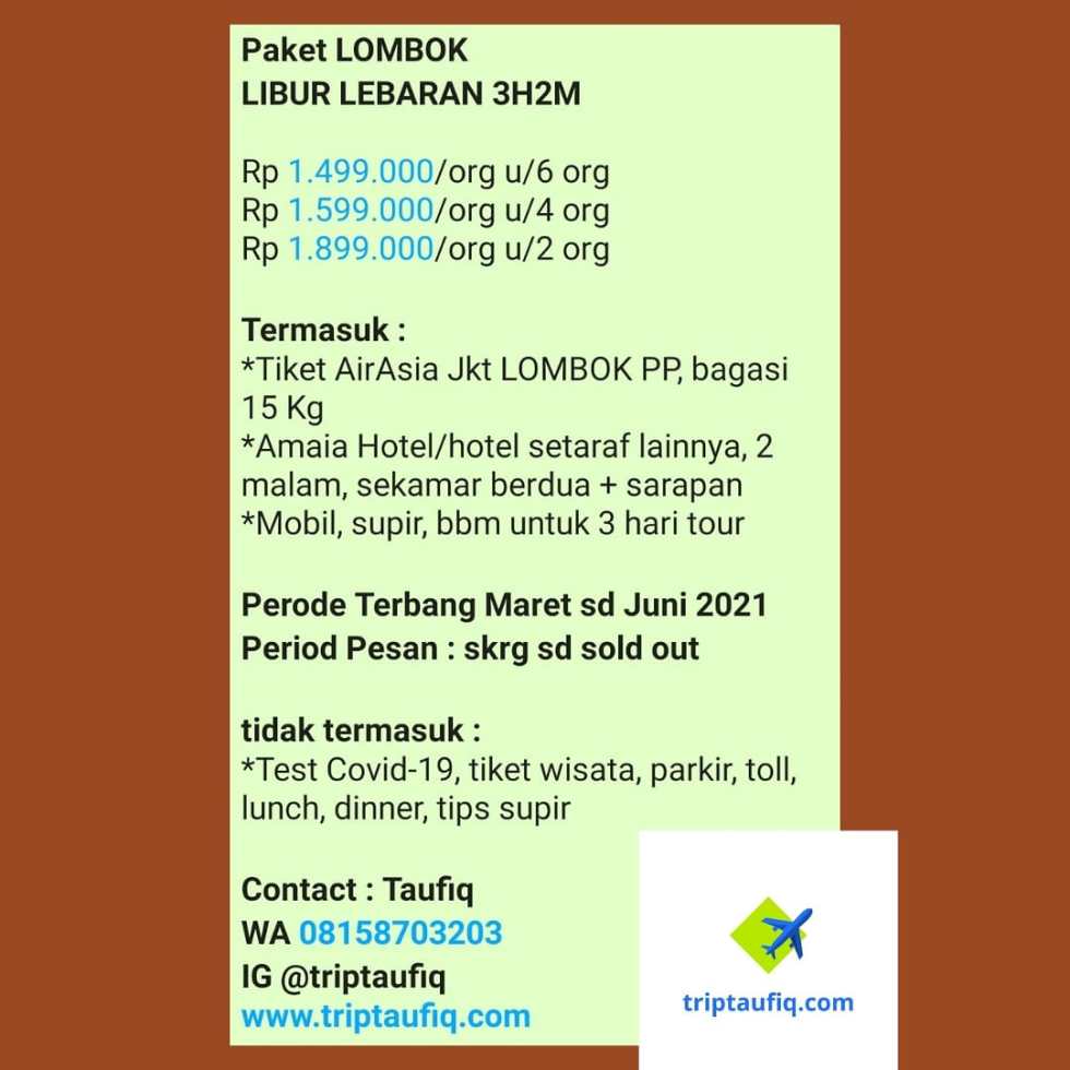 Paket LOMBOK Libur Lebaran